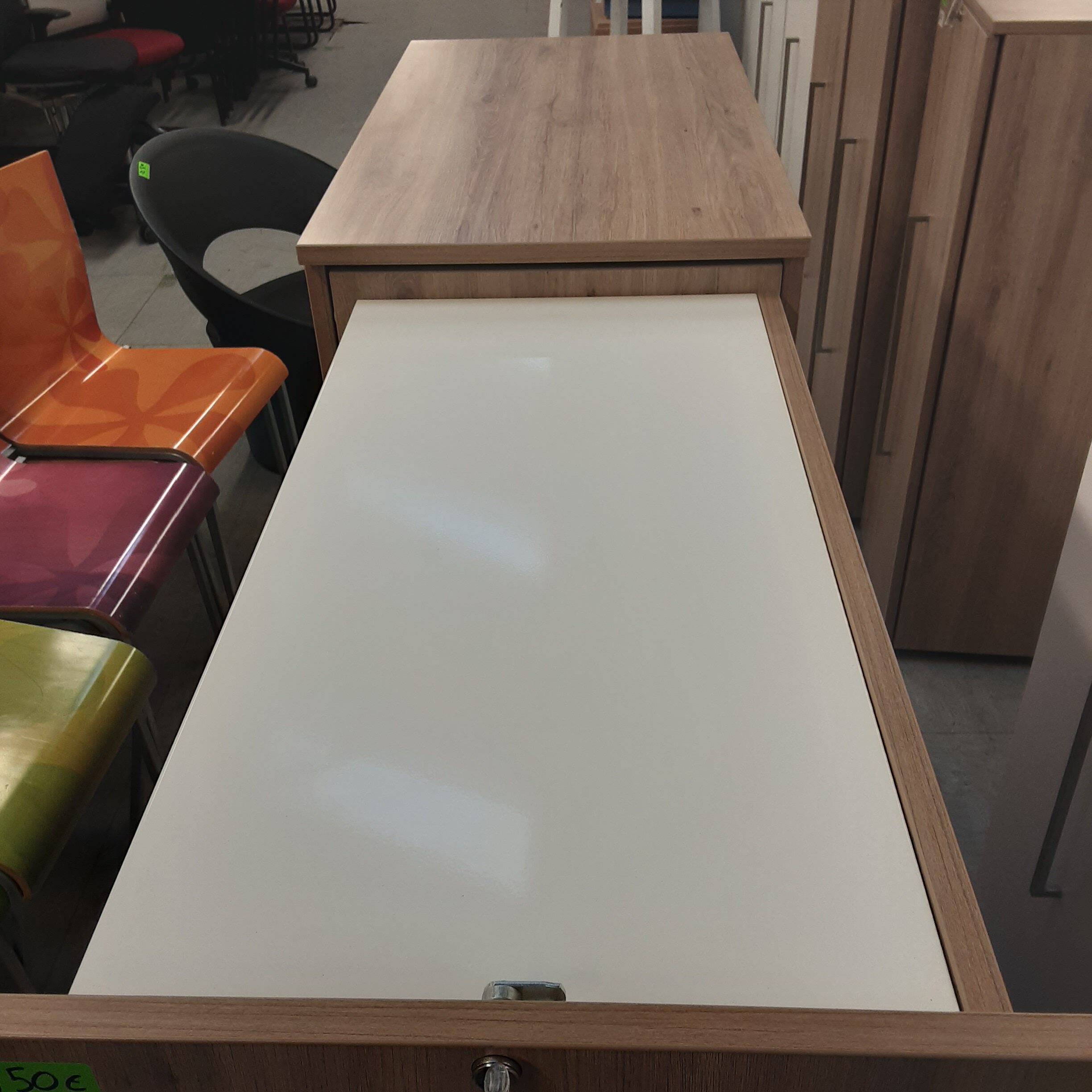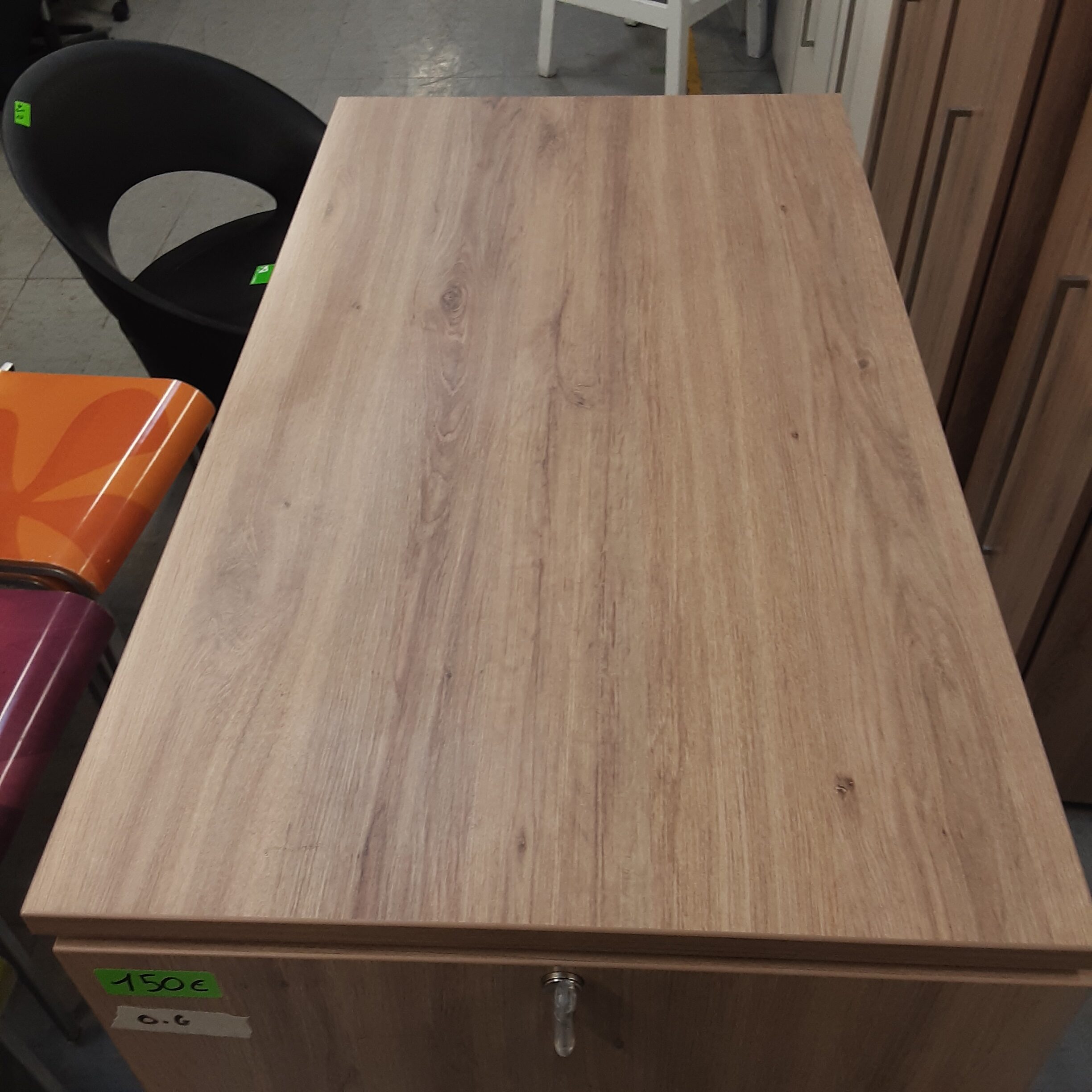 La fermeture à clé du caisson latéral permet de ranger des documents confidentiels ou des effets personnels, assurant ainsi un stockage sécurisé.
