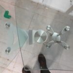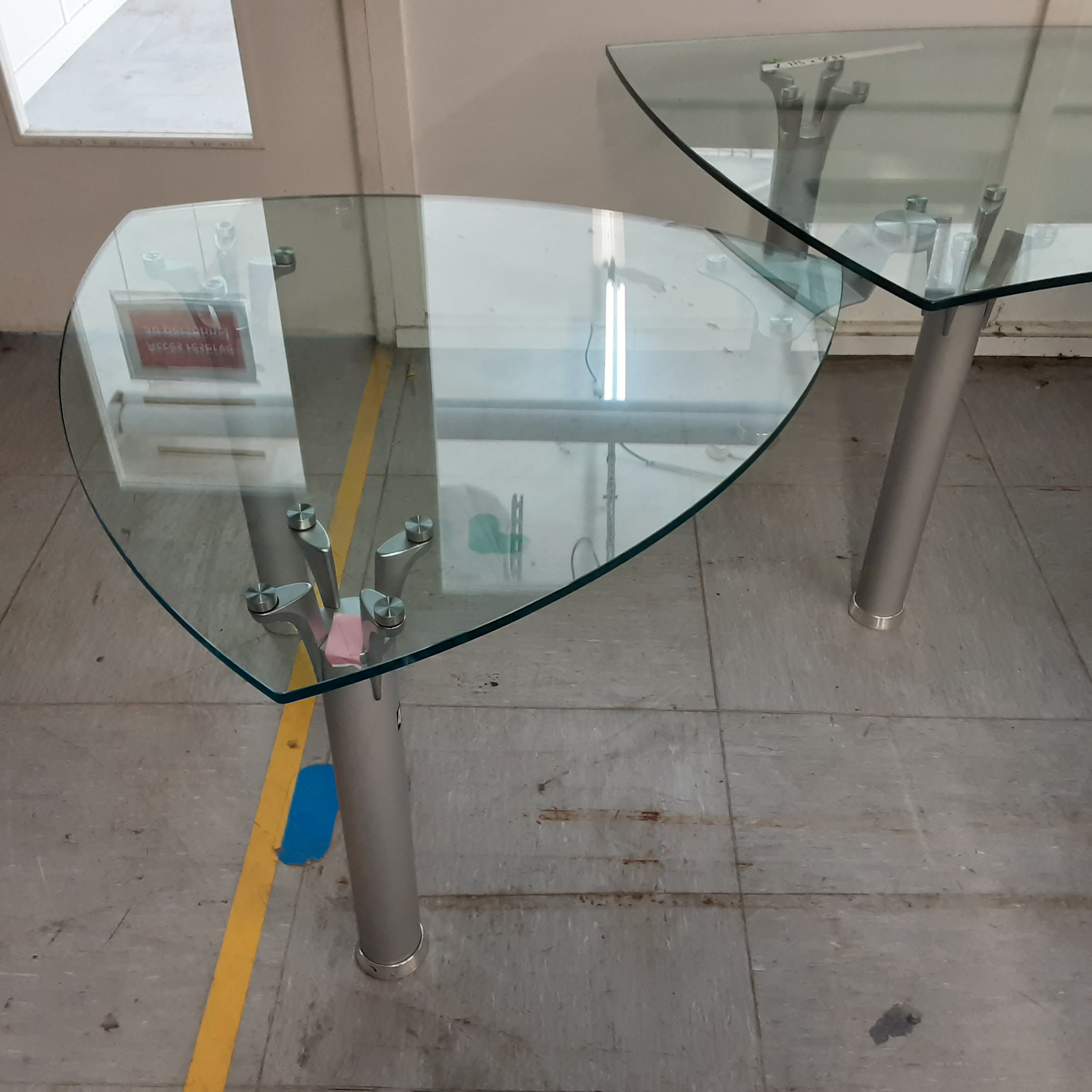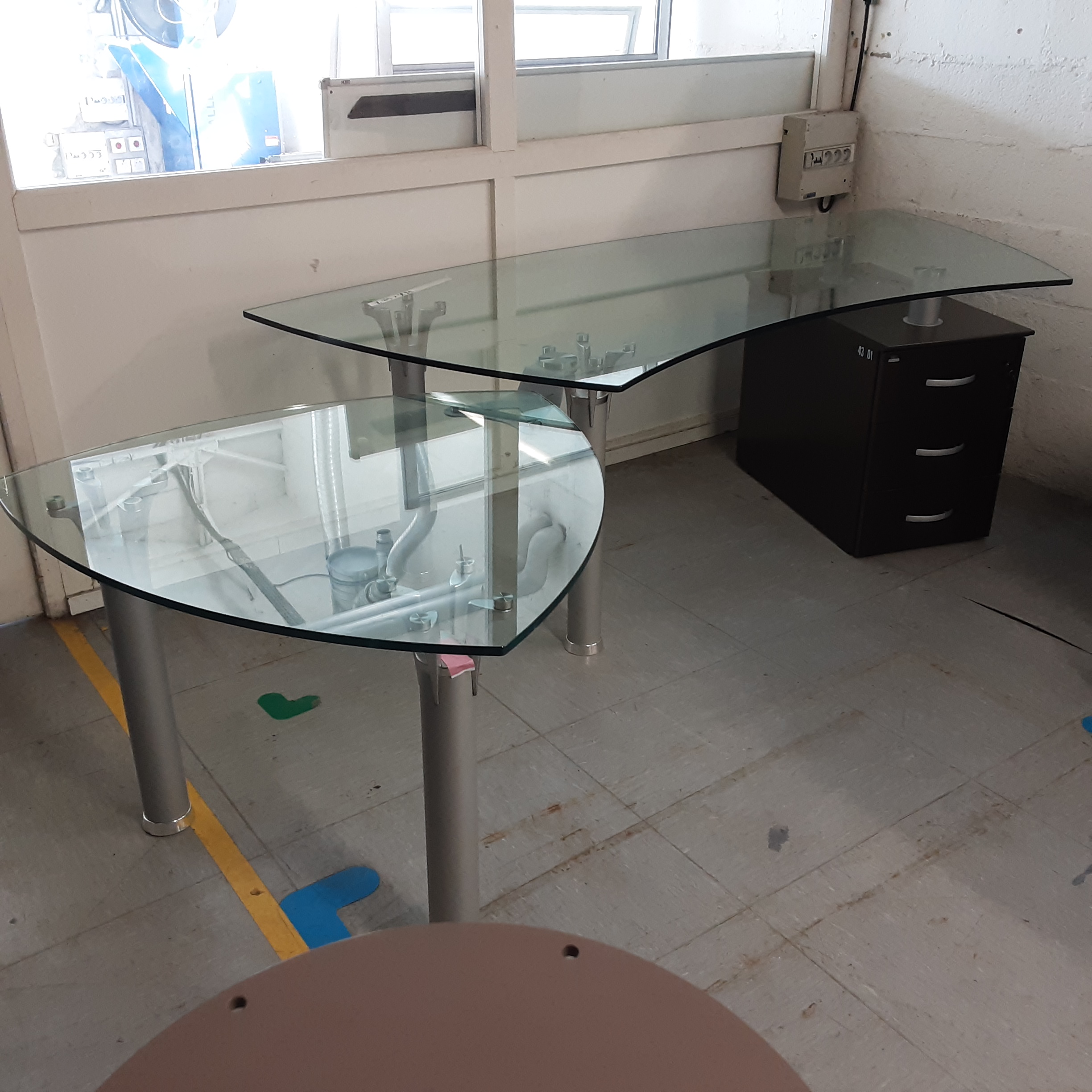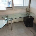 Grand bureau en verre avec extension de bureau sur le coté