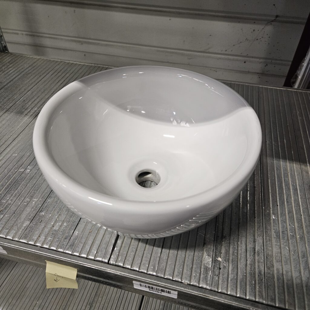 Lavabo sans marque, issu du réemploi, en parfait état. Idéal pour projets de rénovation ou remplacement d’équipements sanitaires.