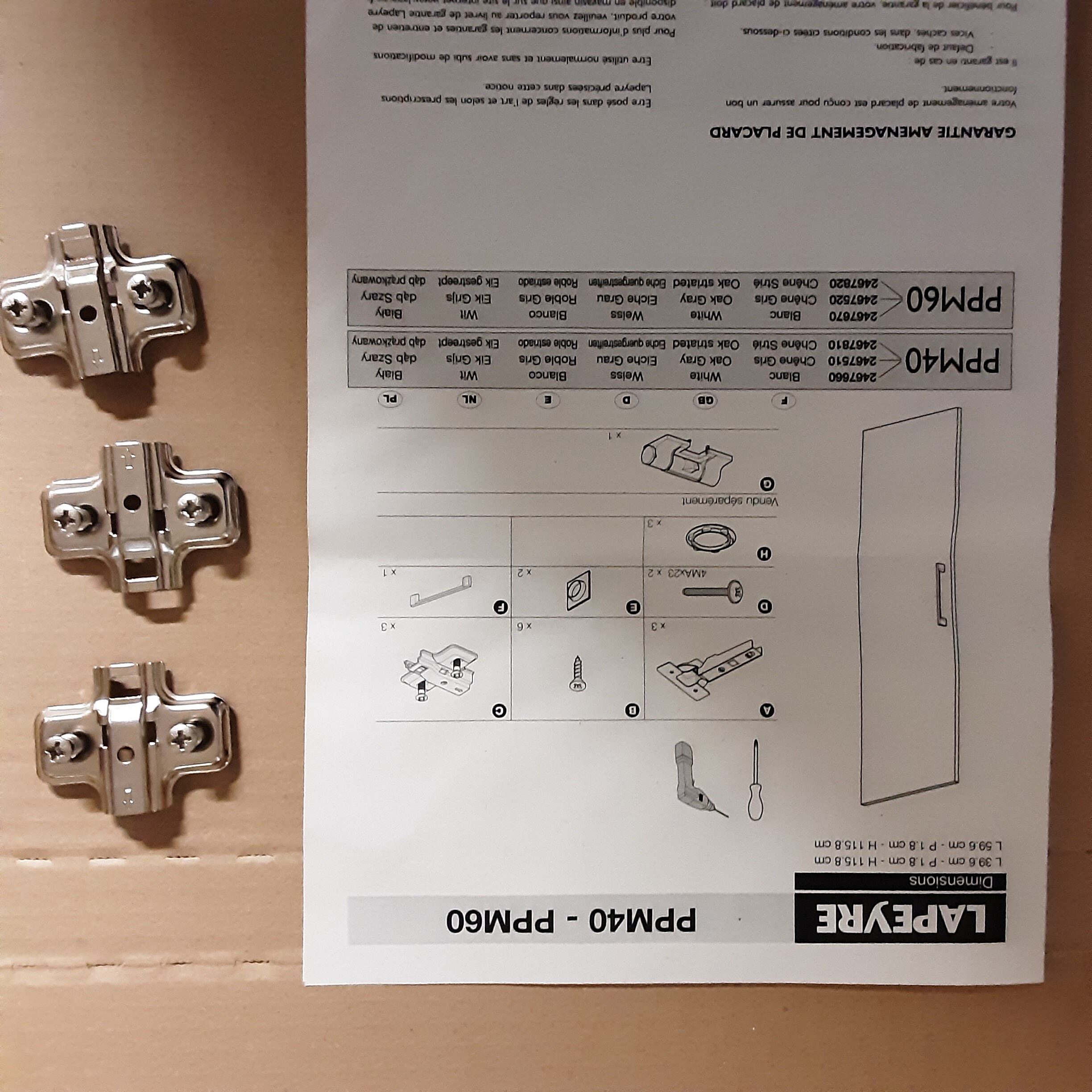 Porte de placard 59.6×115.8 couleur taupe, sens d ouverture interchangeable, 3 charnières incluses