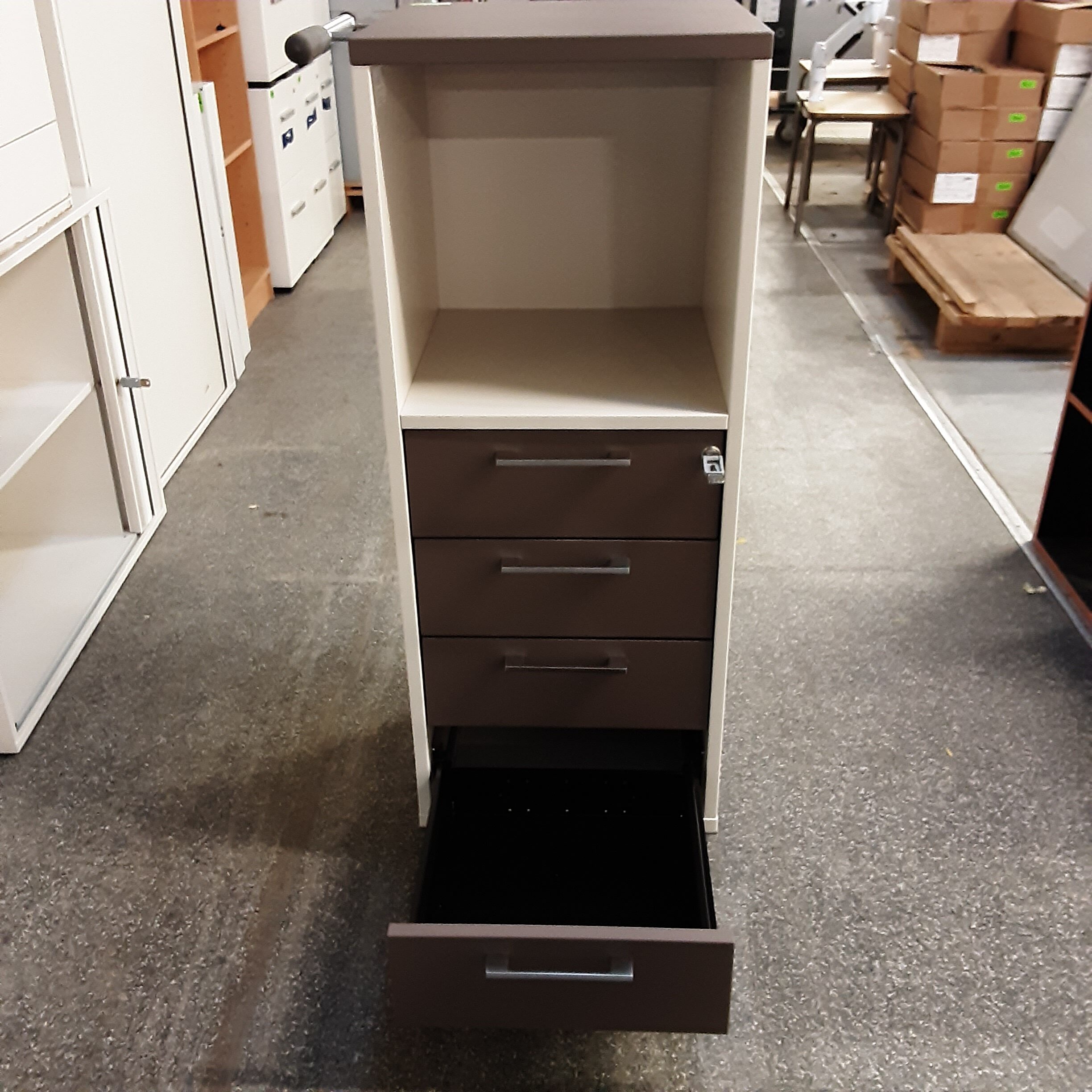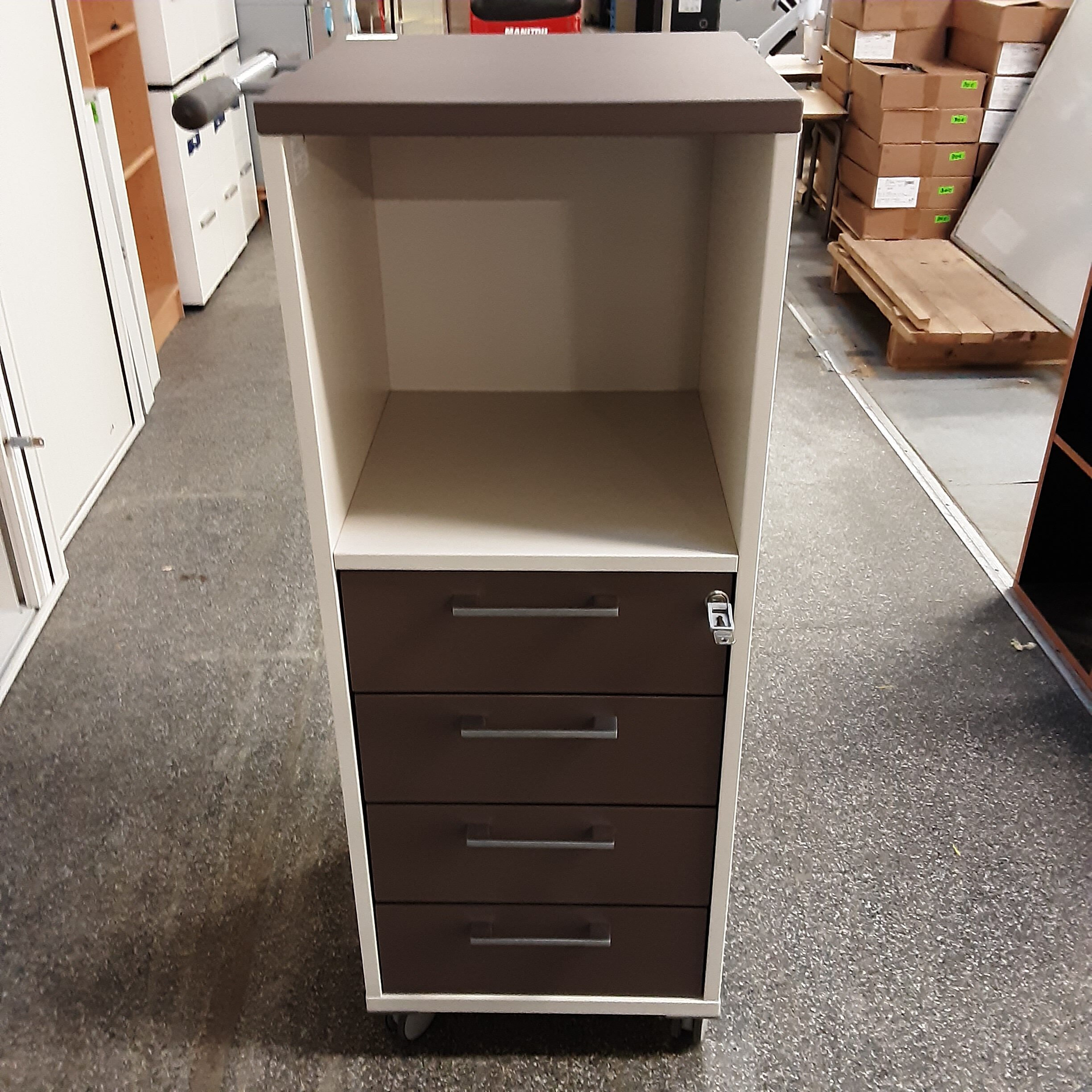 Servante 116x43x143 marron clair avec poignée de transport, 4 tiroirs, marque HAWORTH