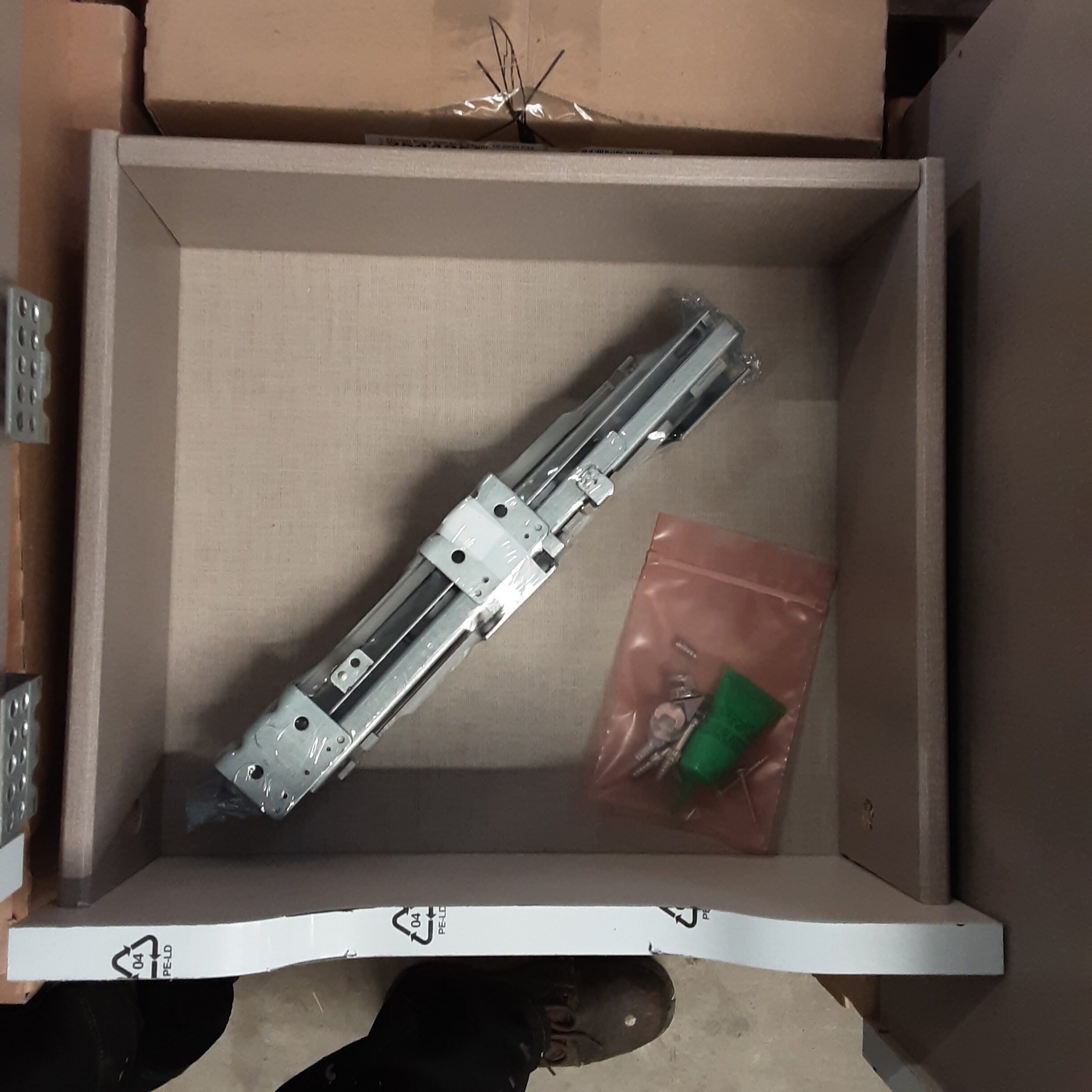 tiroir bois espace Taupe 15.6×40 P35, (Lapeyre), avec ses coulisses à frein.